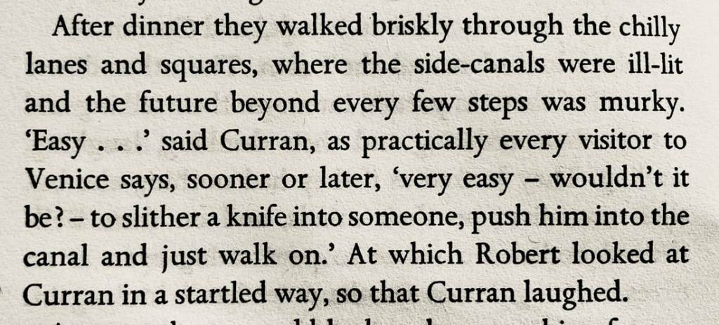 The actual locations mentioned in the novel can be found on the Reading Venice map, and are discussed in a scholarly fashion in Tomás Monterrey’s paper “Scenic and Textual Venice in Muriel Spark’s Territorial Rights” (2019) here.